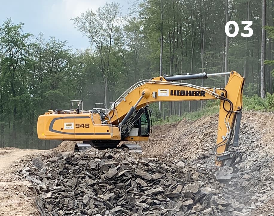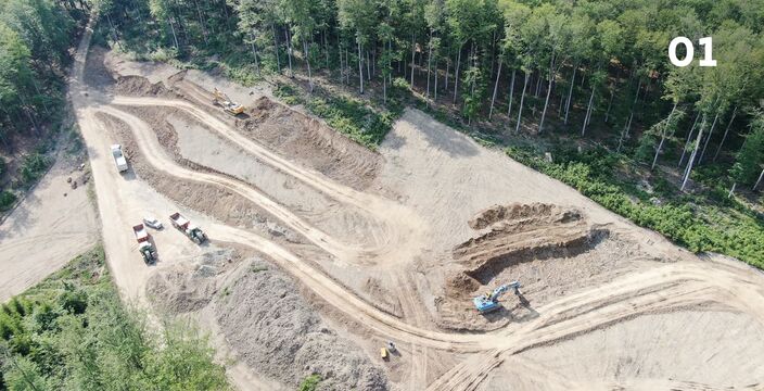 BERGE-BAU baut ebenfalls im Auftrag der Wittgenstein New Energy Holding östlich von Bad Berleburg im geplanten Windpark Arfeld die Infrastruktur für vier neue Windkraftanlagen. Neben der Zuwegung von knapp 3 km Länge und dem Leitungstiefbau über 4 km Kabellänge, müssen für die Erstellung von vier Kranstellflächen fast 60.000 m³ Erde und Fels bewegt werden.