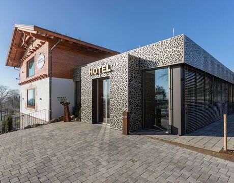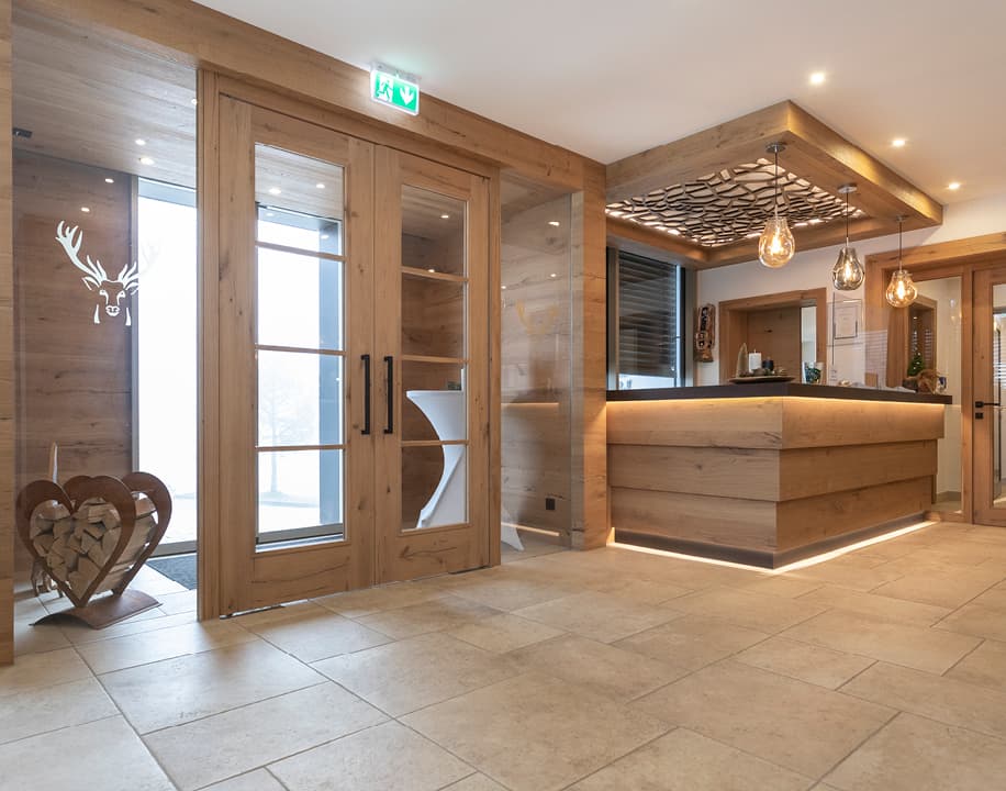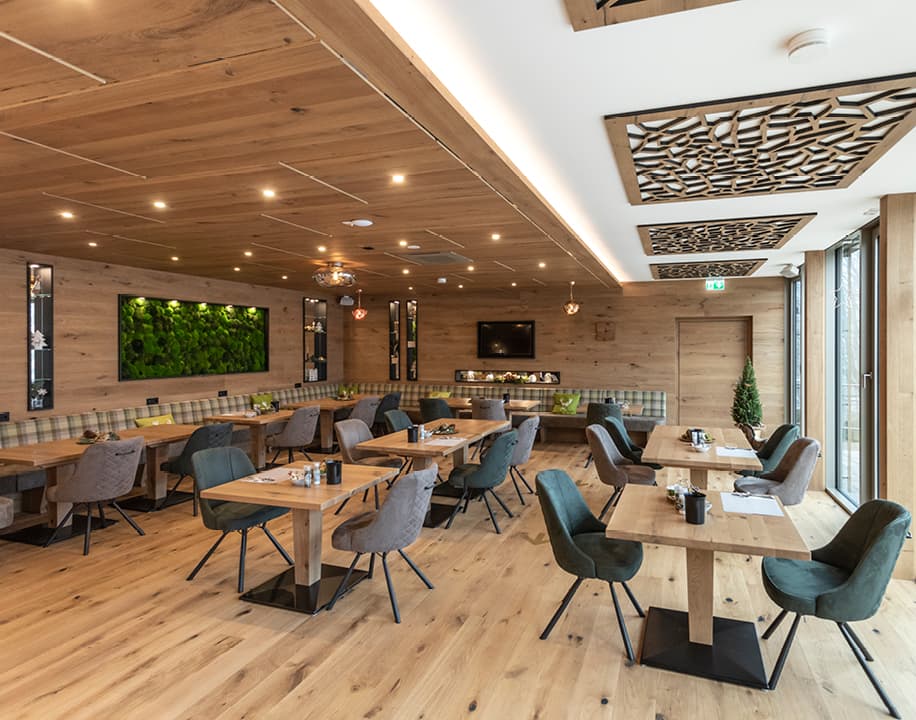 Der Name Steig-Alm ist schon länger ein Begriff, den man auch über die Region hinaus kennt. Vor elf Jahren eröffnete Stefan Weber das Restaurant Steig-Alm. Das modern-gemütliche Lokal im Berghütten-Stil war auch die Basis für die Planung des neuen Hotels. Auch hier sollte ein Gefühl von Heimat vermittelt werden. Schöne Materialien, viel Wärme, warmes Licht – das waren die Wünsche des Bauherrn – und die wurden umgesetzt. Das Gebäude wurde mit vielen Holzelementen im alpinen Stil gebaut. Die Einrichtung ist modern, gemütlich und hochwertig. Zum Wohlfühlen eben.